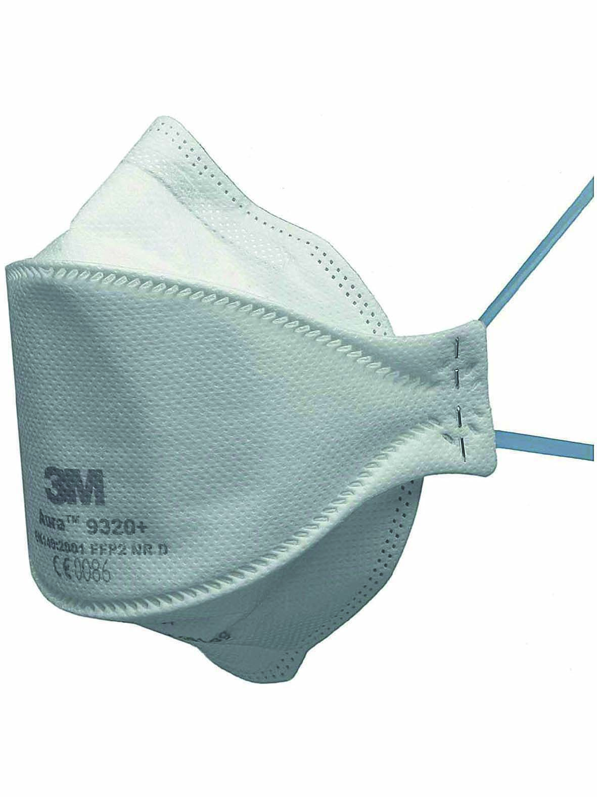 Respiratore monouso 3M con forma piatta a tre lembi, massimo comfort, praticità di conservazione e facilità di distribuzione.